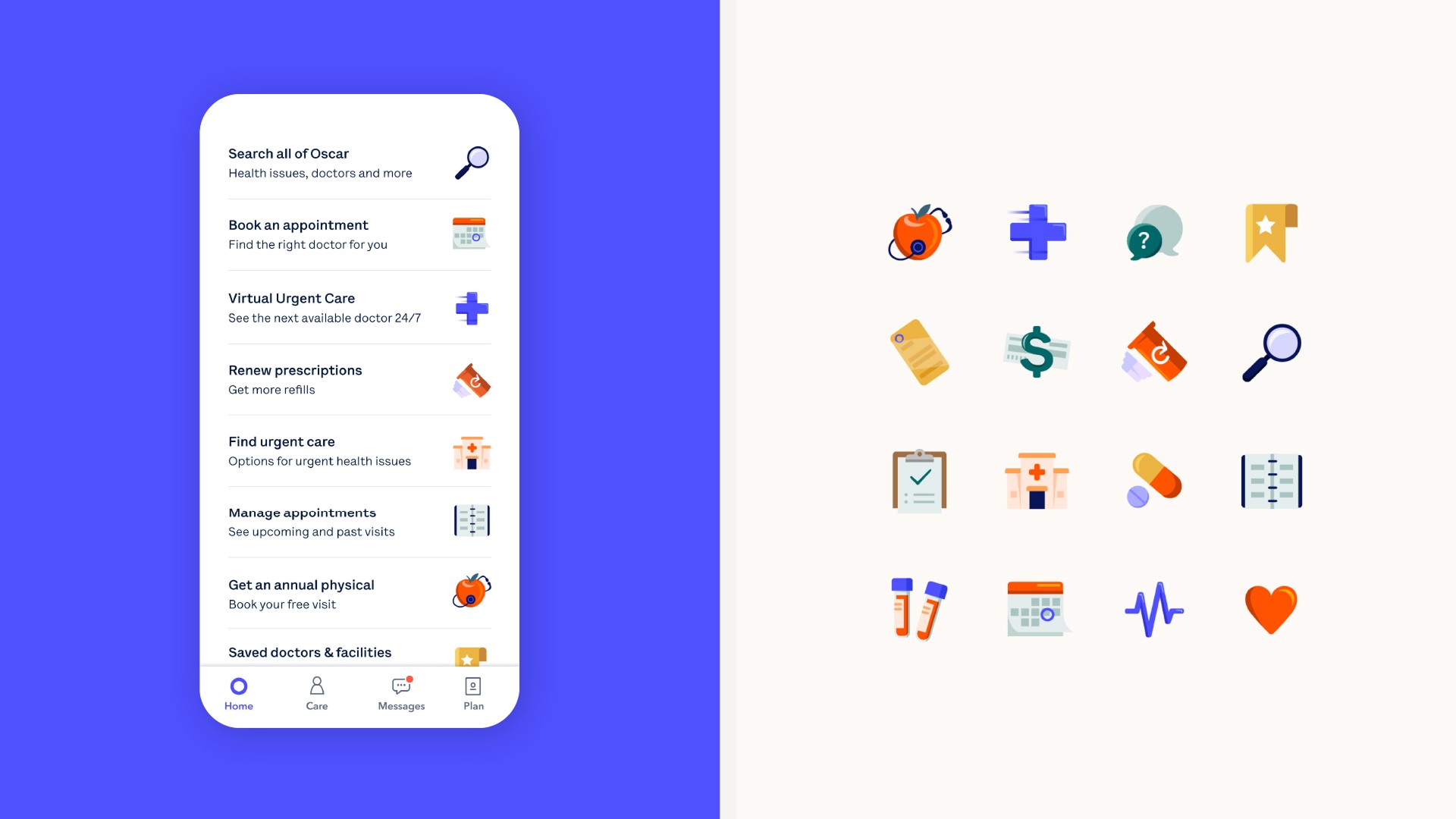 At the center of the system was a refined visual language that emphasized Optimistic Realism. A modern update of Oscar’s original calling card of royal blue, and a flexible supporting color palette that supported campaigns, illustrations and product.