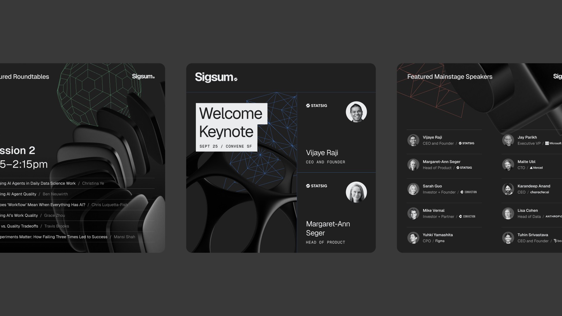 Sigsum is Statsig's annual conference bringing together product leaders, engineers, and data practitioners to discuss experimentation, growth, and data-driven decision-making. The 2025 summit featured a full day of fireside chats, panels, and interviews with over 500 attendees.
