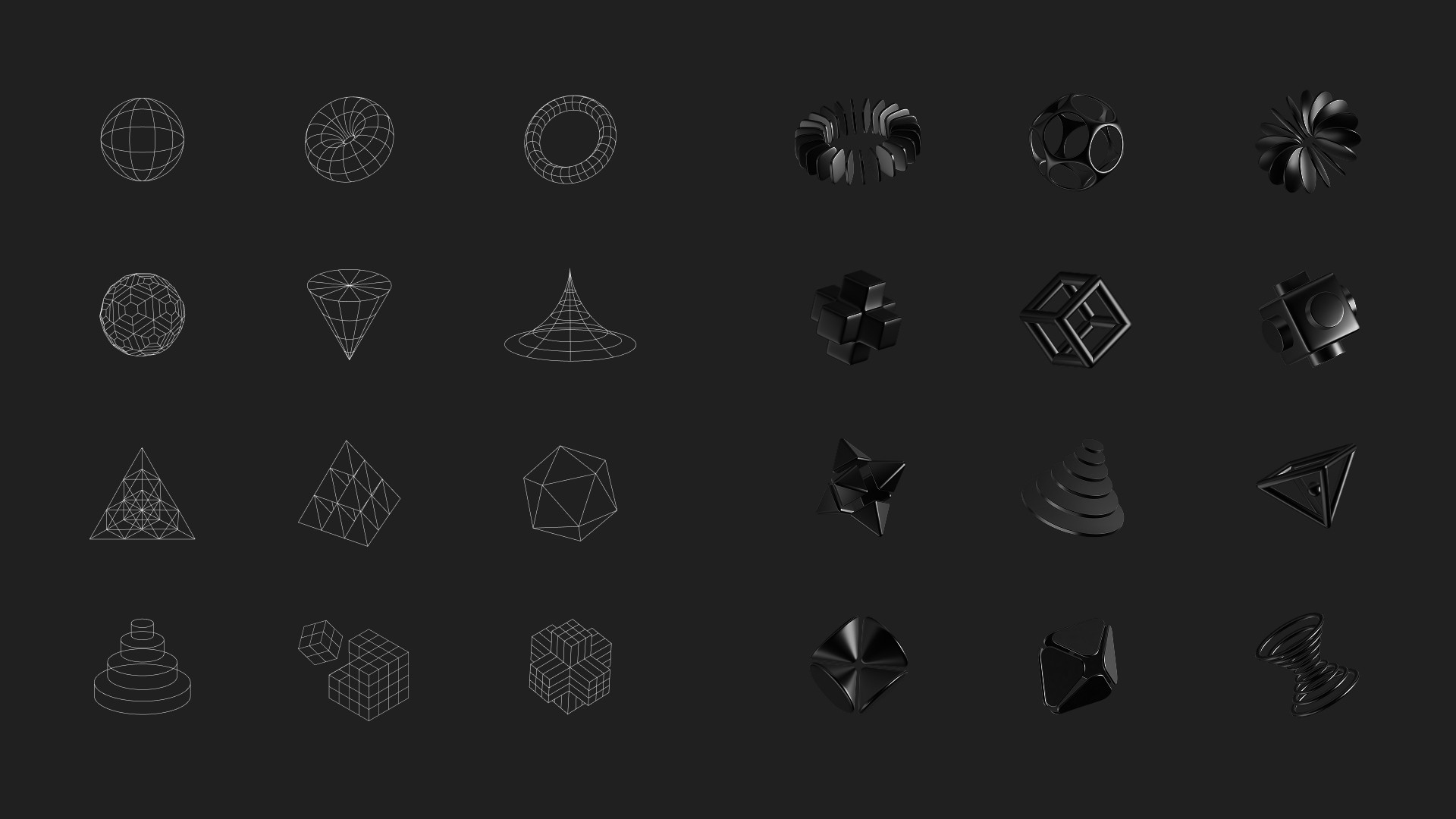 Three core conference topics shaped the system: Experimentation, Growth, and AI. Each was represented by a simple geometric form—square, circle, and triangle—and paired with our core colors: red, green, and blue. The system paired flat, 2D "blueprint" forms with dimensional 3D counterparts—a metaphor for moving from concept to reality. This created a library of static and motion assets that could mix and match across surfaces.
